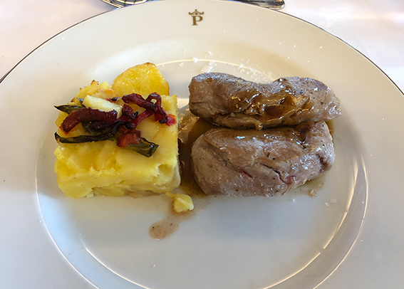Ebenfalls in einzigartiger Lage präsentiert sich der Parador de Málaga: hoch über Stadt und Hafen auf dem Monte Gibralfaro, gegenüber der muslimischen Alcazaba. Mediterrane Vegetation, Naturstein und Holz schaffen eine gemütliche Atmosphäre, die Plätze auf der Loggia-Terrasse sind gefragt für den Aperitif. Ein kleiner Swimmingpool auf dem Dach des Hotels bietet wie die Restaurant-Terrasse stimmungsvolle Ausblicke auf Málaga. Unser Zimmermädchen Carmen überraschte uns jeden Tag mit einer kunstvollen Drappierung der Tagesdecke oder der Handtücher – ein überaus liebevolles Detail. Die Panoramalage des Hotels – man kann sogar einen Blick von oben auf die Stierkampfarena werfen – führt natürlich unzählige Touristen an diesen Ort, die sich nach 10 „Schau-Minuten“ verabschieden müssen, während wir mit einem Gin Tonic oder einem „tinto de verano“ den Ausblick den ganzen Abend genießen können.