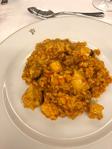 Ebenfalls in einzigartiger Lage präsentiert sich der Parador de Málaga: hoch über Stadt und Hafen auf dem Monte Gibralfaro, gegenüber der muslimischen Alcazaba. Mediterrane Vegetation, Naturstein und Holz schaffen eine gemütliche Atmosphäre, die Plätze auf der Loggia-Terrasse sind gefragt für den Aperitif. Ein kleiner Swimmingpool auf dem Dach des Hotels bietet wie die Restaurant-Terrasse stimmungsvolle Ausblicke auf Málaga. Unser Zimmermädchen Carmen überraschte uns jeden Tag mit einer kunstvollen Drappierung der Tagesdecke oder der Handtücher – ein überaus liebevolles Detail. Die Panoramalage des Hotels – man kann sogar einen Blick von oben auf die Stierkampfarena werfen – führt natürlich unzählige Touristen an diesen Ort, die sich nach 10 „Schau-Minuten“ verabschieden müssen, während wir mit einem Gin Tonic oder einem „tinto de verano“ den Ausblick den ganzen Abend genießen können.